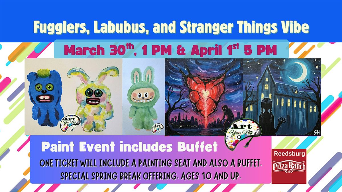 BRING YOUR fugglers, labubus, or imagination for a Stranger Thing Vibe paint event. One ticket includes painting seat and Buffet purchase.
