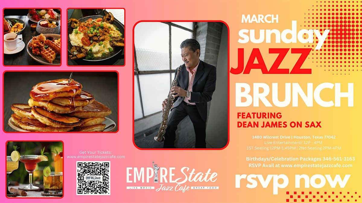 Welcome to the Empire State Jazz Cafe for the 3/8- Sunday Jazz Brunch w/Dean James (2 PM Seating)! Join us on March 8, 2026 at 2:00 PM for an afternoon filled with soulful tunes and delicious food.