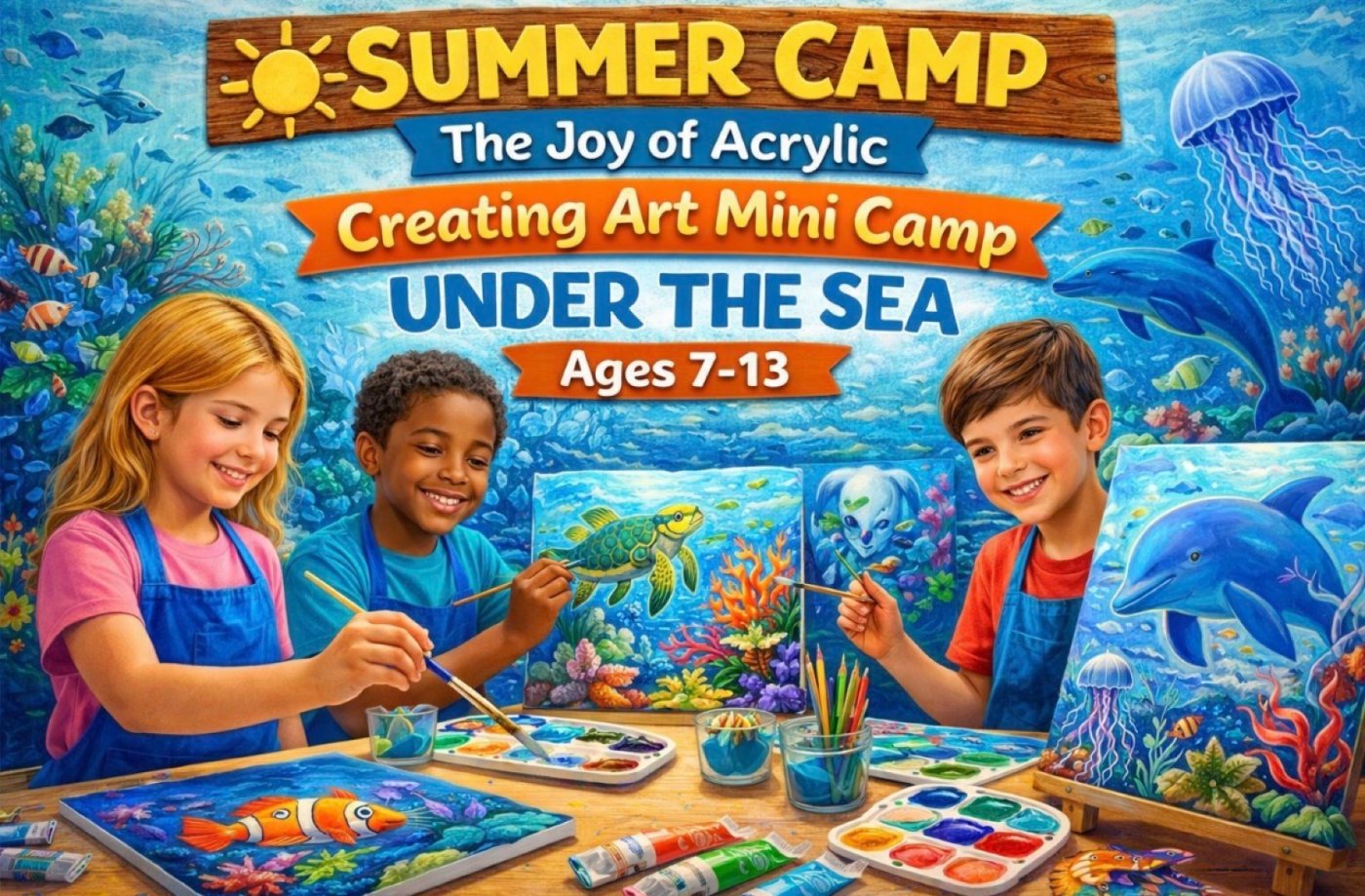 Activity Description: We are excited to offer this exciting summer mini-camp program for children ages 7-13. In this 3-day program, students will receive step-by instruction in the art of acrylic painting. Students will learn the fundamentals of painting while creating fun under the sea-themed artwork.