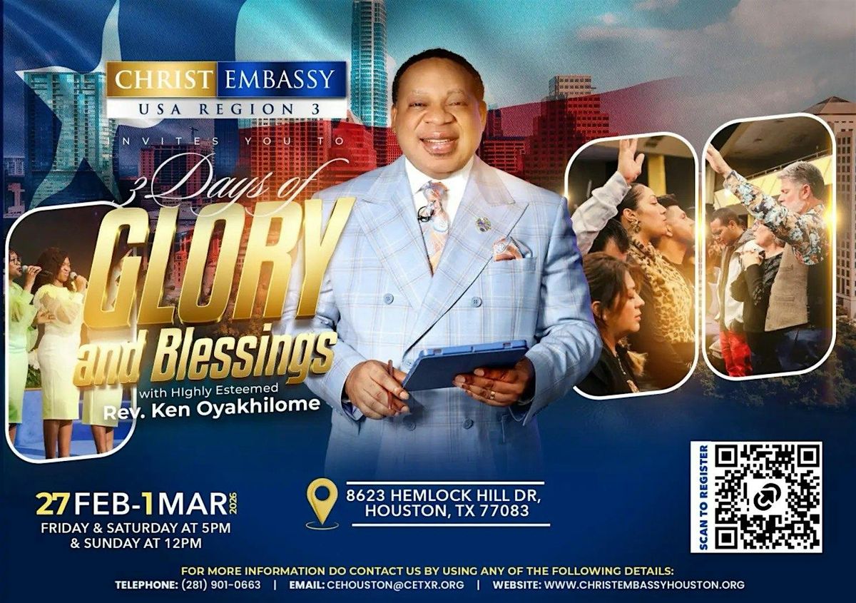 Get ready to experience 3 Days of Glory and Blessings like never before, filled with joy, inspiration, and unforgettable time in God's pres!