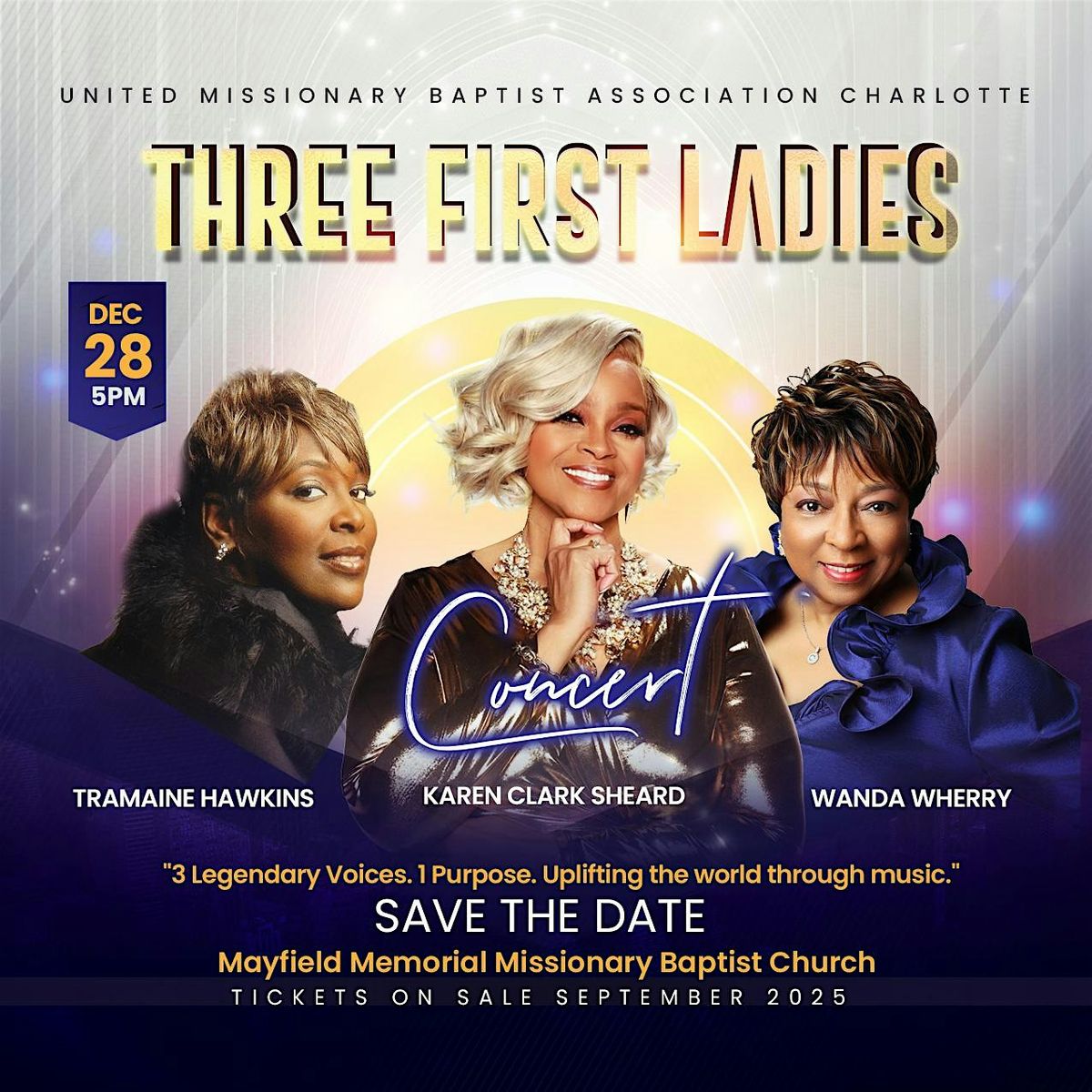 The Three FIRST Ladies Concert is more than a musical event; it’s a celebration of the past, present, and future of women in ministry. Through the unmatched voices of gospel legends Karen Clark Sheard, Tremaine Hawkins, and Dr. Wanda Wherry, a Metropolitan Opera Regional Winner, lyric soprano, and First Lady of The Field, this night promises to stir the soul and lift the spirit. Hosted in Charlotte, NC, in a fully handicap accessible venue, this experience invites you into a sacred space where generations gather, faith is ignited, and legacy is honored. Come expecting powerful worship, unforgettable moments, and a renewed sense of purpose. This is not just a concert. It’s a movement of honor, healing, and hope. Be a part of it.