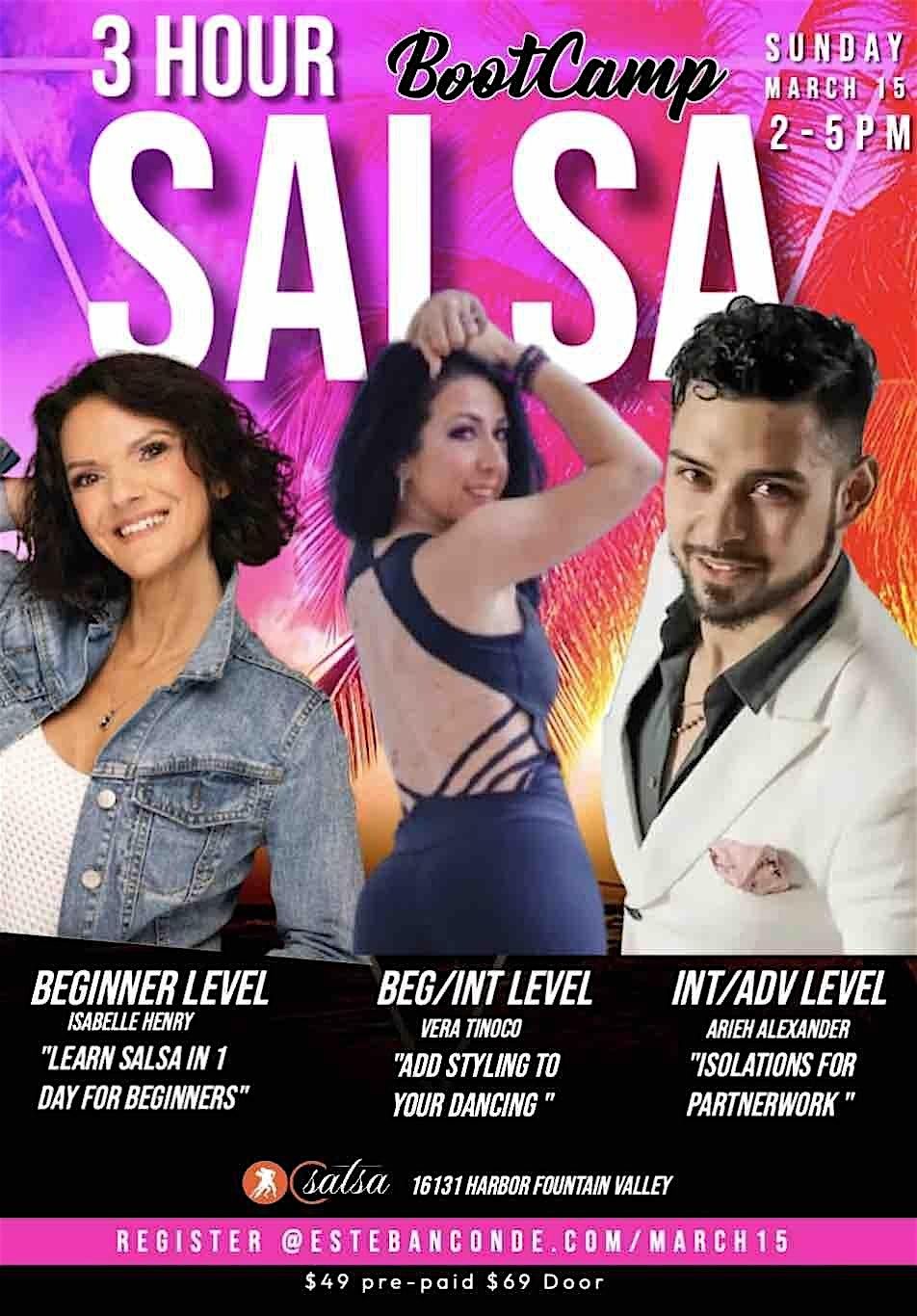 OC Salsa Invites you to our 3 Hour Salsa Boot Camp with 3 Level Classes & World Class Instructors. FREE TO OC SALSA MEMBERS. No Partner, special shoes, clothing or experience needed. For those coming for the first time, you can truly learn how to dance the basics in 1 Day.