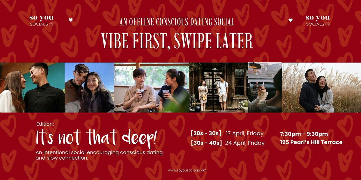 Vibe First, Swipe Later is an intentional social to practice conscious dating and slow connection. This event is grounded in real-world psychology.