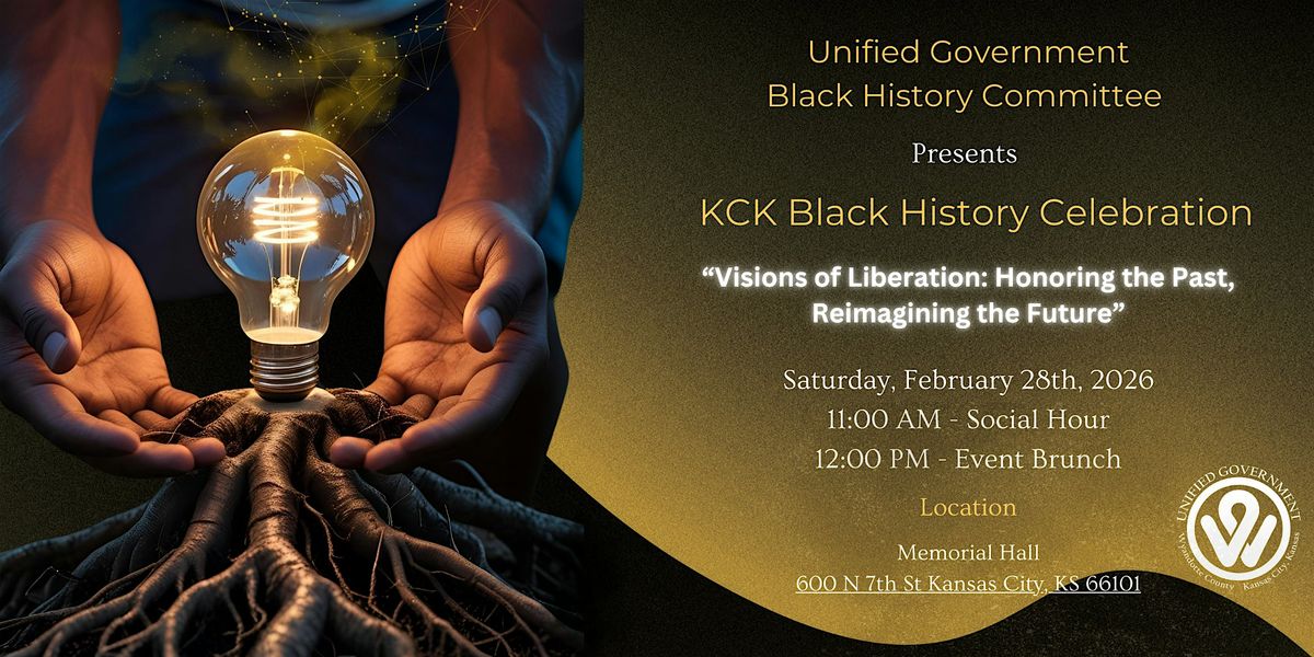Join us for a memorable event celebrating the Visions of Liberation: Honoring the Past, Reimagining the Future. This year's event will be held on Saturday, Feb 28, 2026, at Memorial Hall (600 N. 7th Street) in downtown KCK from 11 AM to 2 PM. This year's in-person social hour and program will take place during the brunch timeframe to allow attendees the opportunity to enjoy the rest of their day.