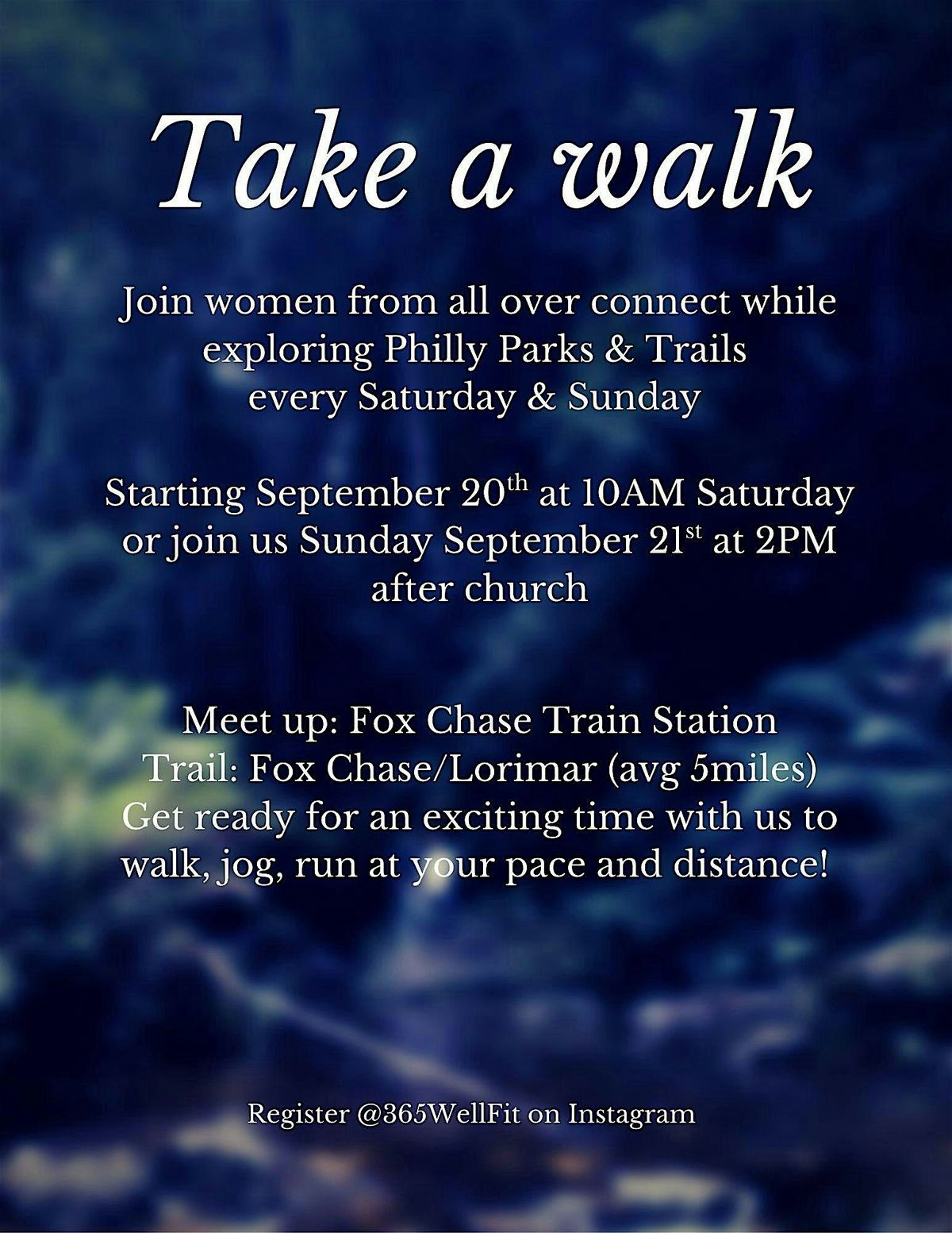 We will meet up at the Fox Chase Train Station at 10am on Saturdays and Sundays at 2pm. The Fox Chase/Lorimar Trail starting point is right across the street. We will warm up and stretch to begin our walk, jog or run 15 minutes after meeting start time! 365 WellFit is truly excited to begin this journey with you!!!