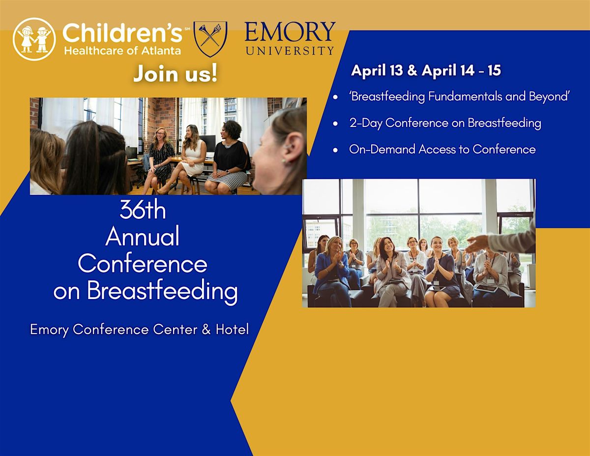 For the 36th year, Emory University is pleased to offer a dynamic and engaging conference on breastfeeding in collaboration with Children’s Healthcare of Atlanta, hospitals across the region, and partners from community organizations on April 13-15th, 2026.