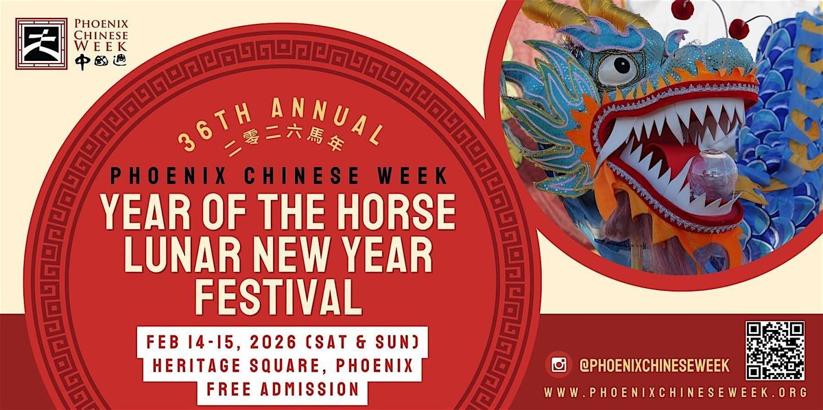 Celebrate the Lunar New Year at the 36th annual Phoenix Chinese Week Lunar New Year Festival, February 14-15, 2026.