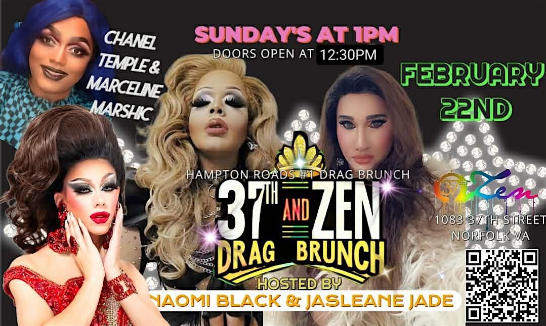 Welcome to the 37th and Zen Drag Brunch! Join us at 37th and Zen on February 22, 2026 at 12:30 PM (Eastern Time) for a fabulous afternoon filled with amazing drag performances and delicious brunch offerings. Get ready to be entertained by talented drag queens while enjoying tasty food and drinks in a lively atmosphere. Don't miss out on this unforgettable experience! Grab your friends and come have a blast with us!