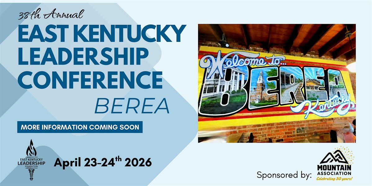 Join us for the annual East Kentucky Leadership Conference in Berea—a dynamic, two-day gathering of community leaders, visionaries, and changemakers from across the region. Through keynote sessions, panel discussions, and networking breaks, the conference explores forward-thinking strategies for leadership, economic growth, and Appalachian resilience. Come collaborate, be inspired, and build impact together.