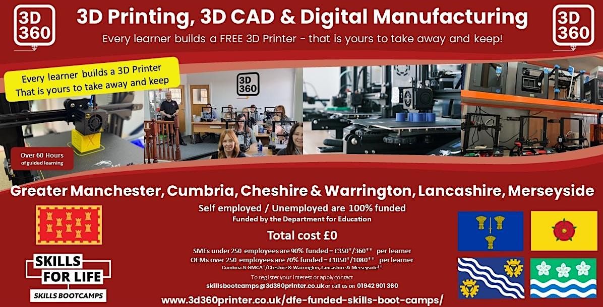 For more details of what’s available in each area, please visit https://www.3d360printer.co.uk/dfe-funded-skills-boot-camps/
