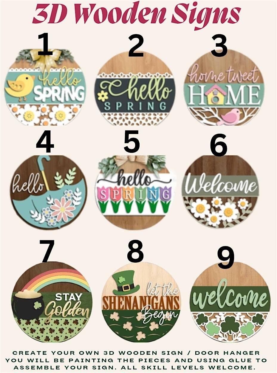 We are excited to be working with Create with Art & Soul to bring this adorable 3D Wooden Sign event to OEC. Please see the picture attached for design options and make sure to choose your design when you are registering. All materials and art instruction included.