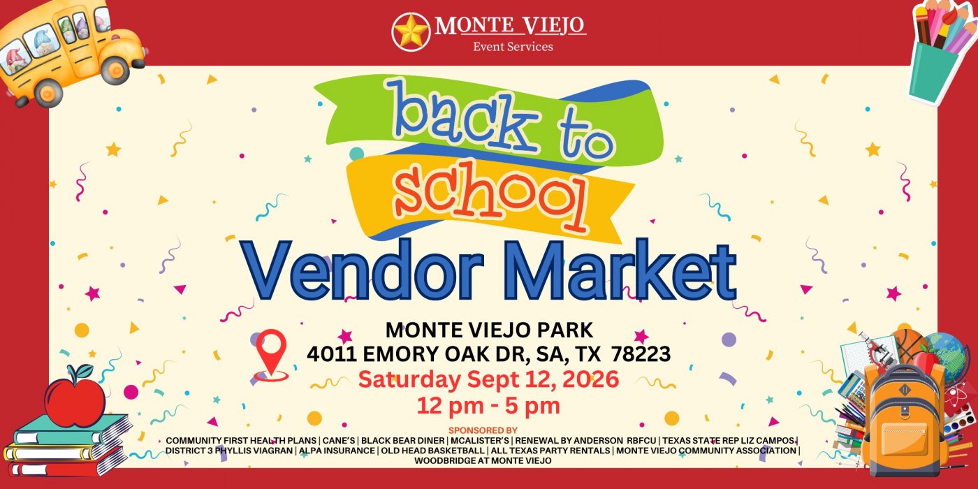 Visit the website to see what vendors have signed up as well as for the most up-to-date information - https://monteviejocommunityevents.com/back-to-school-market