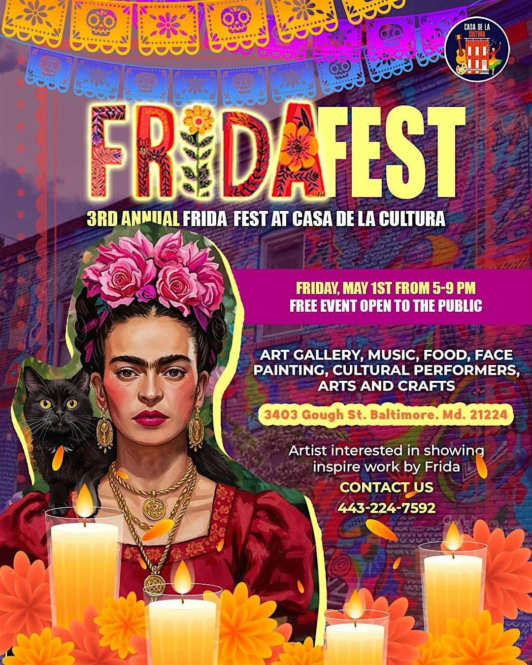 We are currently looking for artists who would like to showcase Frida Kahlo–inspired artwork during the celebration.This is a wonderful opportunity to share your creativity and be part of a unique cultural event in Highlandtown, East Baltimore.