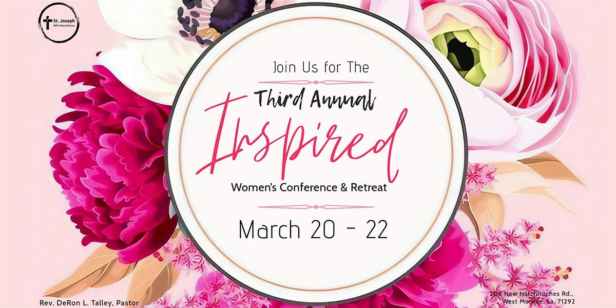 Welcome to the 3rd Annual Inspired: Women's Conference & Retreat! Join us for a weekend of empowerment, connection, and inspiration at 206 New Natchitoches Rd. This event is designed to uplift and celebrate women from all walks of life. Immerse yourself in engaging workshops, insightful speakers, and rejuvenating activities. Connect with like-minded individuals and leave feeling motivated and ready to conquer the world. Don't miss out on this incredible opportunity to recharge and reignite your passion. See you there!