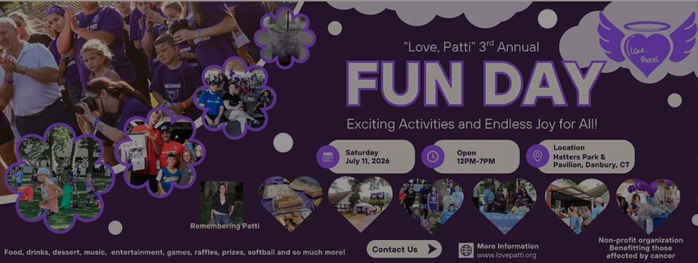 The Love, Patti Fun Day & Tournament is a full day of fun, games, prizes, food, drinks, activities, and community connection — all in honor of Patti Ricco’s legacy of kindness and service. Families, friends, and neighbors come together for friendly competition, raffles, music, kids’ activities, and surprises throughout the day. It’s a celebration built around joy, generosity, and supporting one another.