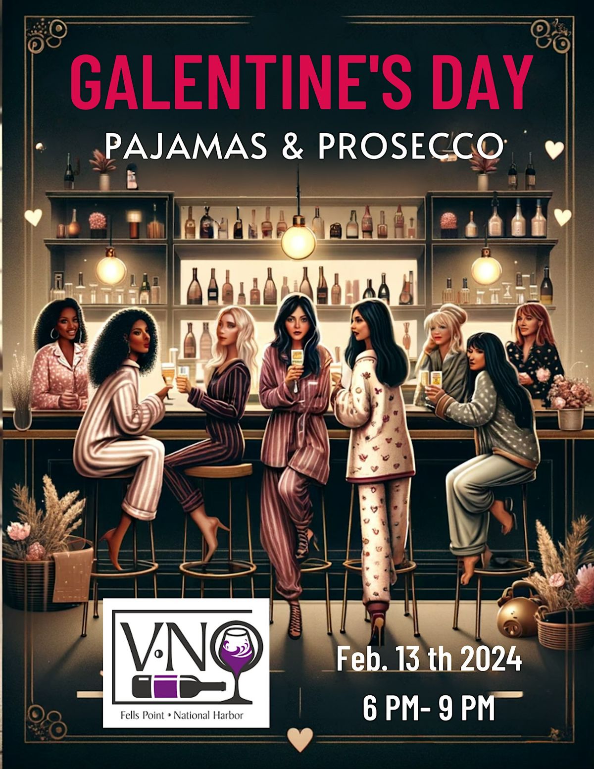 Join us for "Pajamas & Prosecco" at V-NO Wine Bar & Shop for an evening that blends comfort, style, and celebration. Slip into your chicest pajamas and sip on prosecco while indulging in decadent desserts and handcrafted cocktails. Our cozy waterfront space is the perfect setting for a night filled with good company, great drinks, and unforgettable memories.