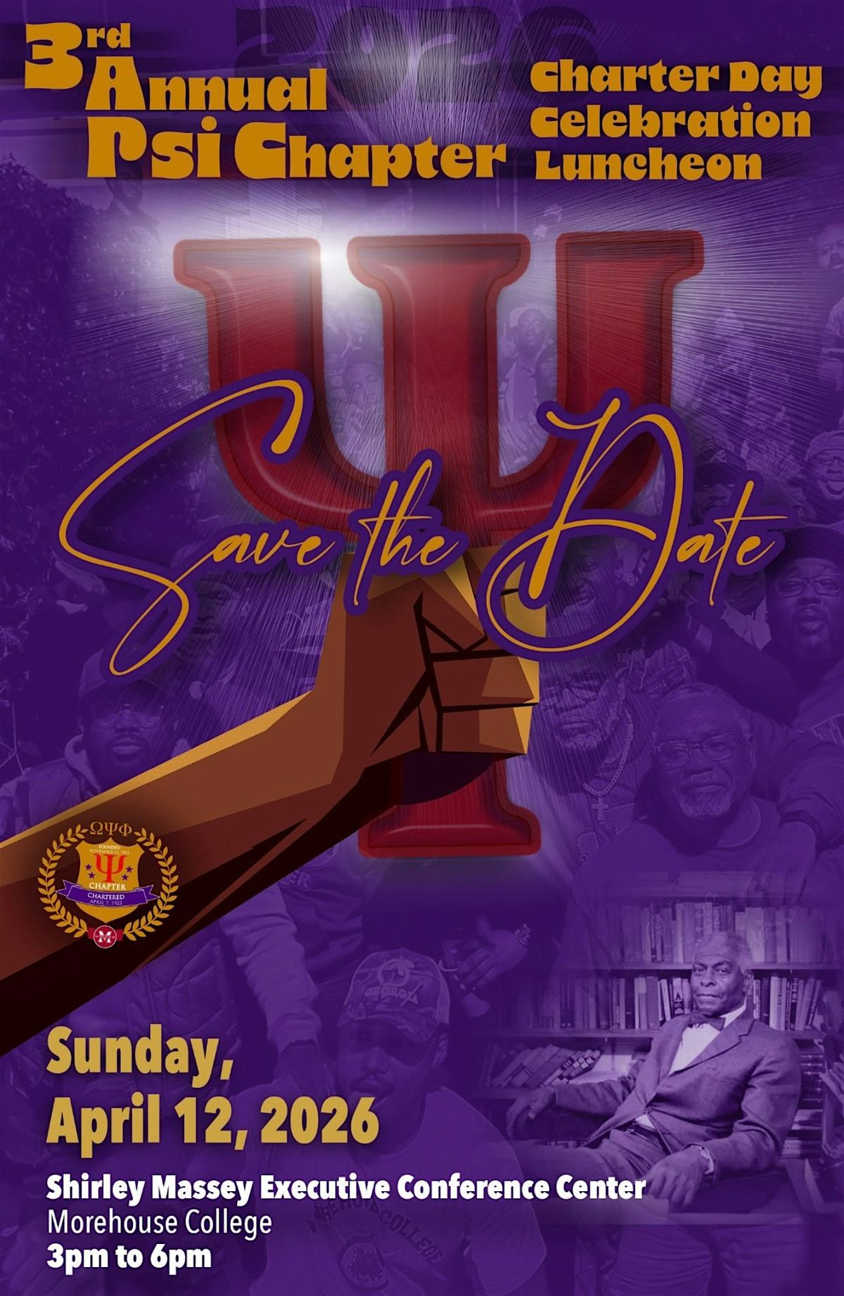 This year's Psi Chapter Charter Day Celebration Luncheon will be held at the Shirley Massey Executive Conference Center in the Walter E. Massey Leadership Center on the campus of Morehouse College.