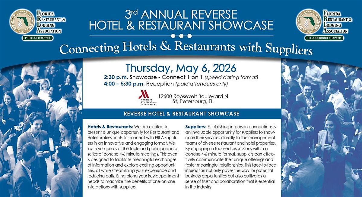 Our Reverse Trade Show is an innovative networking event that redefines the traditional approach to business connections. Hosted by FRLA’s Pinellas and Hillsborough Chapters, this unique platform empowers our Allied members to showcase their services and products directly to the influential management of hotels and restaurants. This is an exceptional opportunity for Allied members to engage with key decision-makers who are eager to explore valuable offerings that can enhance their businesses. By fostering these meaningful connections, we are not only promoting collaboration but also paving the way for mutually beneficial partnerships that can drive success in the hospitality industry.