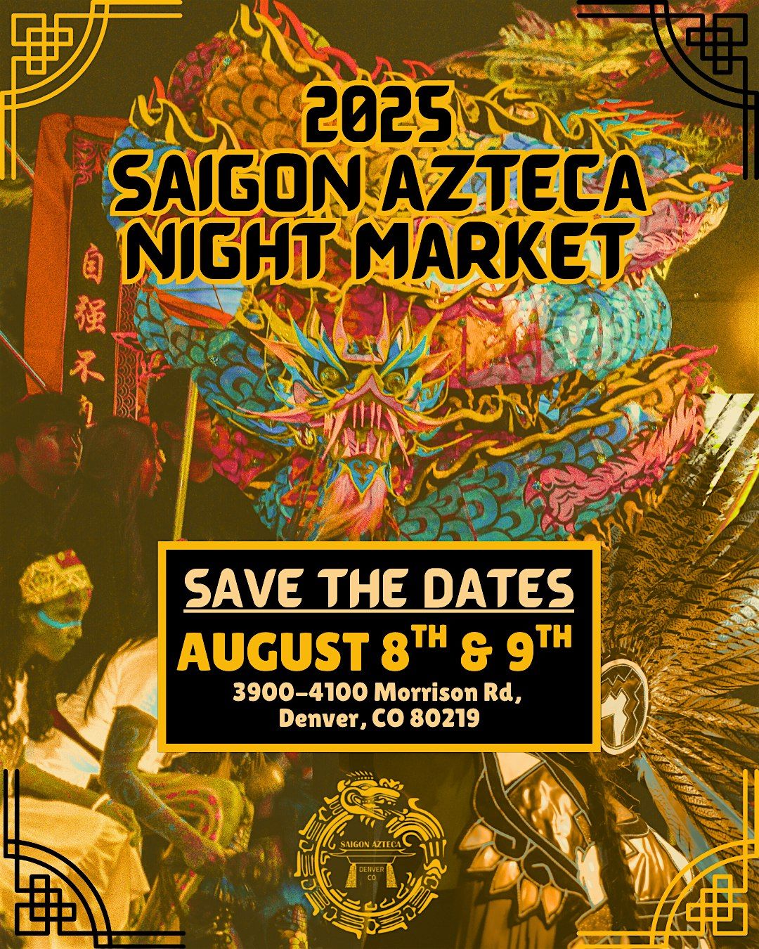 ? 3rd Annual Saigon Azteca Night Market – August 8–9, 2025 ?Location: 3900–4100 Morrison Rd, Denver, CO 80219Times:• Friday, August 8: 6 PM – 10 PM• Saturday, August 9: 1 PM – 9 PM