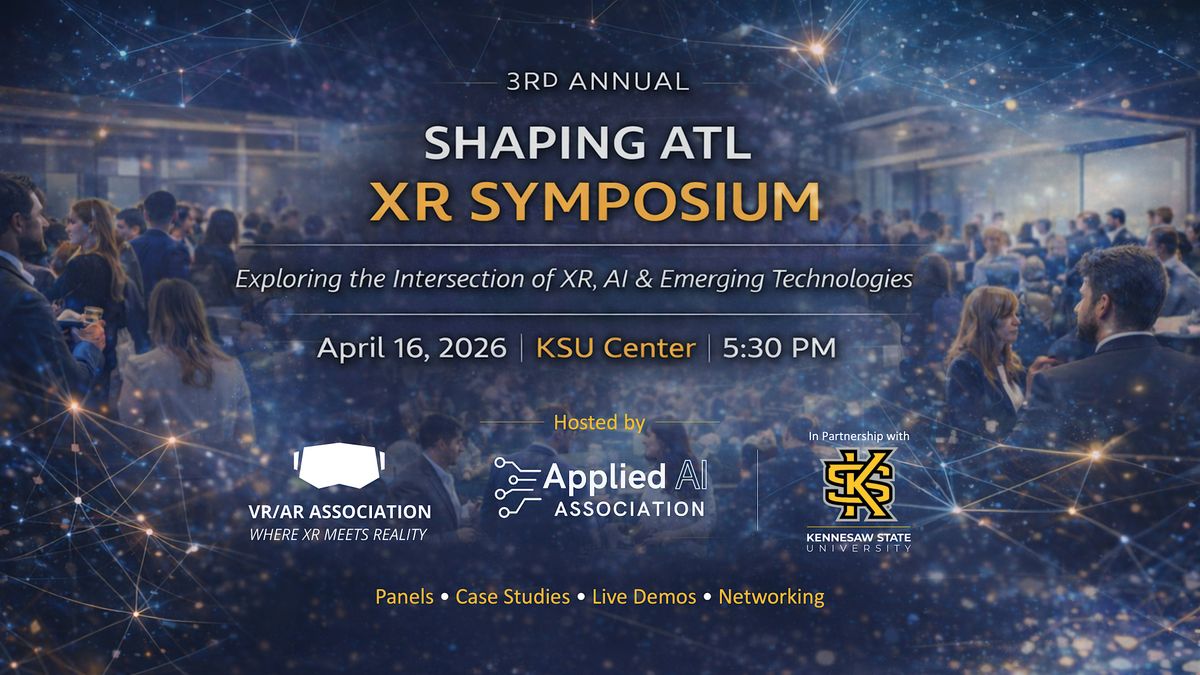 The VR/AR Association (VRARA) and Applied AI Association (AAIA) Atlanta Chapters, in collaboration with Kennesaw State University (KSU), invite you to the 3rd Annual Shaping ATL XR Symposium!