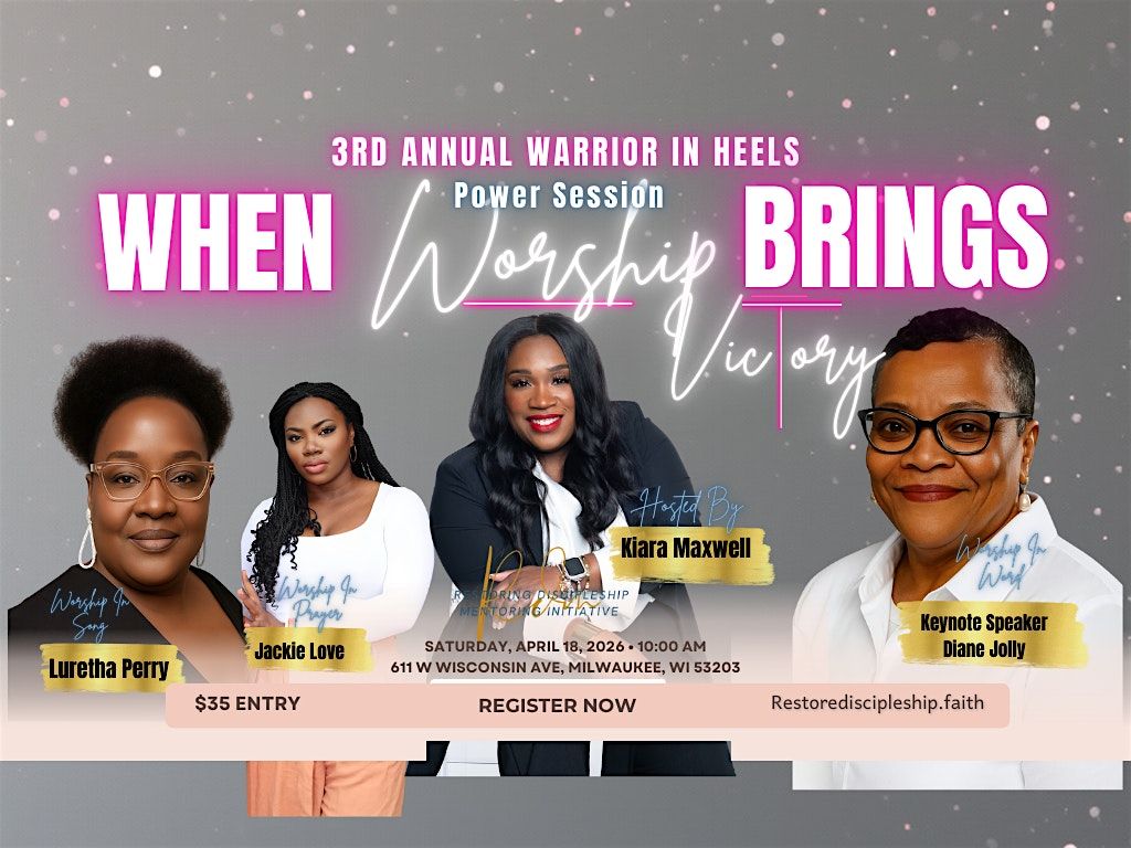 Our 3rd annual Warrior in Heels Power Session is a transformative gathering for women at every stage of faith- new believers and seasoned women alike- who desire to encounter God and understand worship as a way of life. Through anointed teaching and practical instruction, our speakers will equip you to move beyond music into daily, lived-out worship. Guests will enjoy a deluxe breakfast buffet, curated shopping experiences, and a powerful atmosphere of renewal and alignment. Free street parking and paid valet parking are available at the venue.