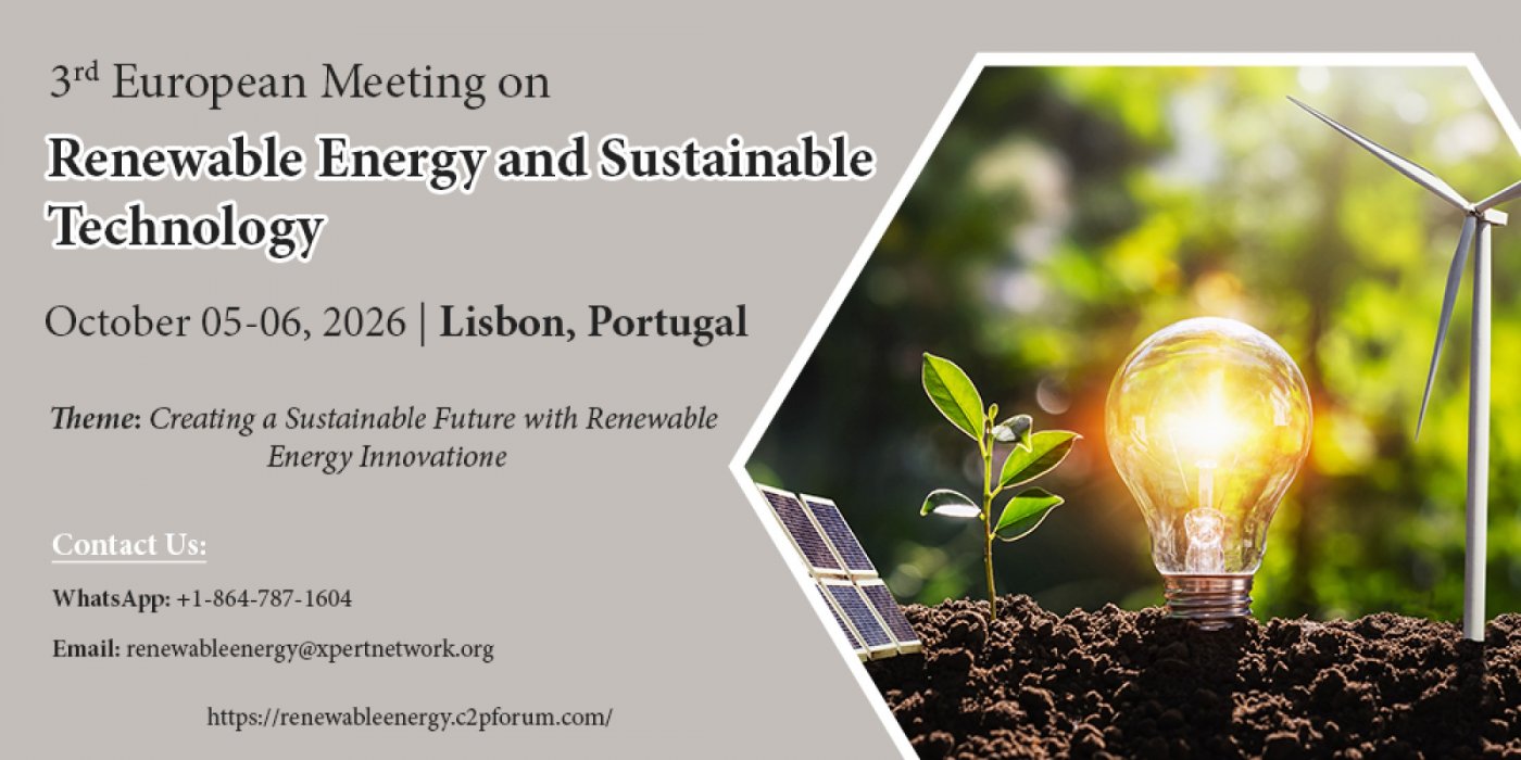 We are delighted to announce the 3rd European Meeting on Renewable Energy and Sustainable Technology taking place from October 05-06 2026 in Lisbon Portugal. We eagerly look forward to welcoming participants from across the globe. Be a part of our insightful audience and branch your network with our cordially invited speakers and delegates holding renowned positions in their respective institutions and firms.
