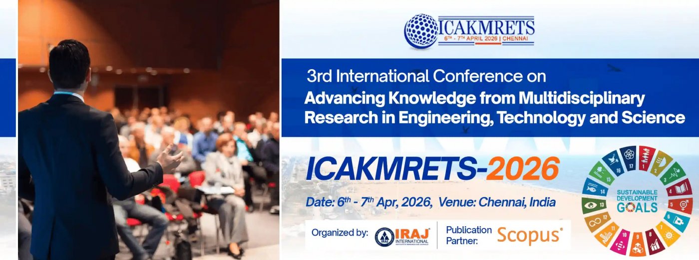 3rd International Conference on Advancing Knowledge from Multidisciplinary Research in Engineering, Technology and Science(ICAKMRETS-2026), Organized by : IRAJ International during 06th-07th Apr 2026 at Chennai,India Join us for a vibrant exchange of ideas and insights at the forefront of multidisciplinary educational and Scientific research. Engage with esteemed scholars, researchers, and practitioners as we explore innovative approaches and current trends shaping the landscape of Education, learning and Science across diverse disciplines. Together, let's delve into transformative research that inspires and redefines the future of learning.