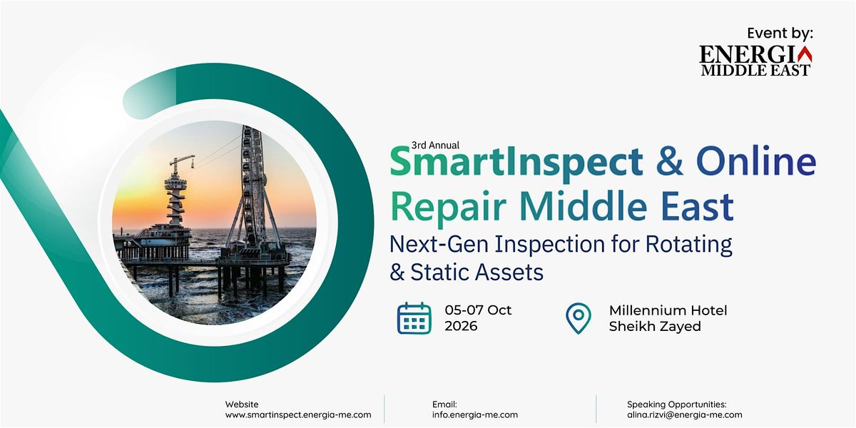 The Smart Inspect & Online Repair Middle East Conference & Exhibition 2026, organized by Energia Middle East LLC, is a premier industry event focused on smart inspection technologies, asset integrity management, and digital transformation in oil & gas and petrochemical industries. Scheduled for 5–7 October 2026 at Millennium Hotel Sheikh Zayed, Dubai, the conference brings together global experts, engineers, and technology leaders to explore the latest advancements in non-destructive testing (NDT), AI-driven inspection solutions, robotics, predictive maintenance, cybersecurity, and Industry 4.0 innovations.