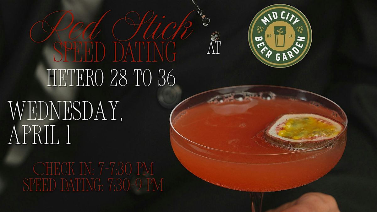 Thank you for your interest in attending a Red Stick Speed Dating Event! We will be hosting this round at Mid City Beer Garden at 3808 Government Street in Baton Rouge. This event is designed for people attracted to the opposite gender between the ages of 28 and 36.