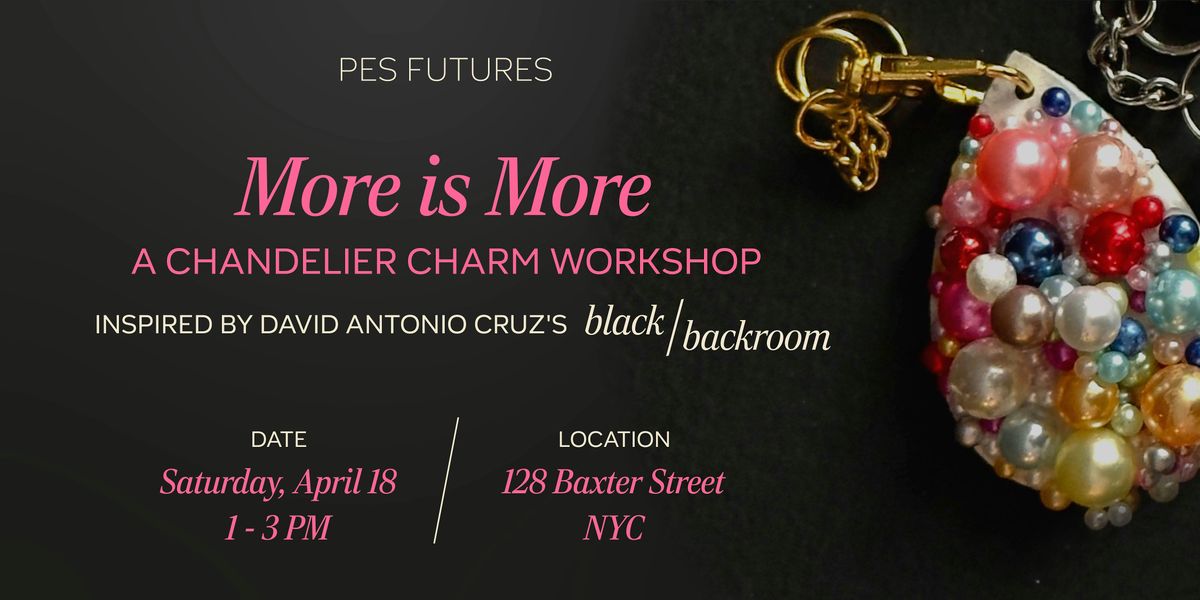 Join us Saturday, April 18, 2026 from 1 – 3 PM for More is More, a hands-on Chandelier Charm workshop inspired by David Antonio Cruz's exhibition black/backroom at PES FUTURES (128 Baxter St. NYC).