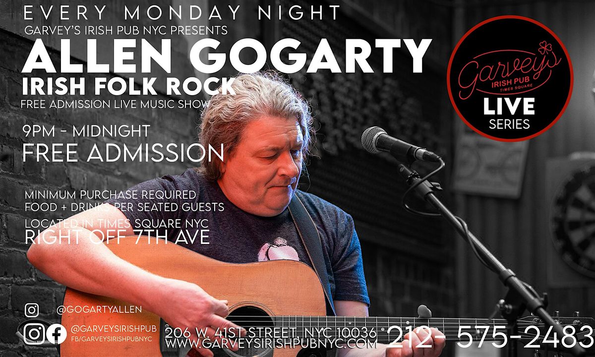 Allen Gogarty was born into a musical family in County Meath, in his native country of Ireland, and started playing various musical instruments at an early age. He began to write his own songs in his early teens. He started a band with his siblings and performed the pub circuit in Ireland and in festivals in Europe. After studying at the famed Academy of Music and Ballyfermot College of Music in Dublin, Allen went out on his own, performing in Ireland and Europe. After gaining much notoriety, Allen was asked to open for both Suzanne Vega and Status Quo.