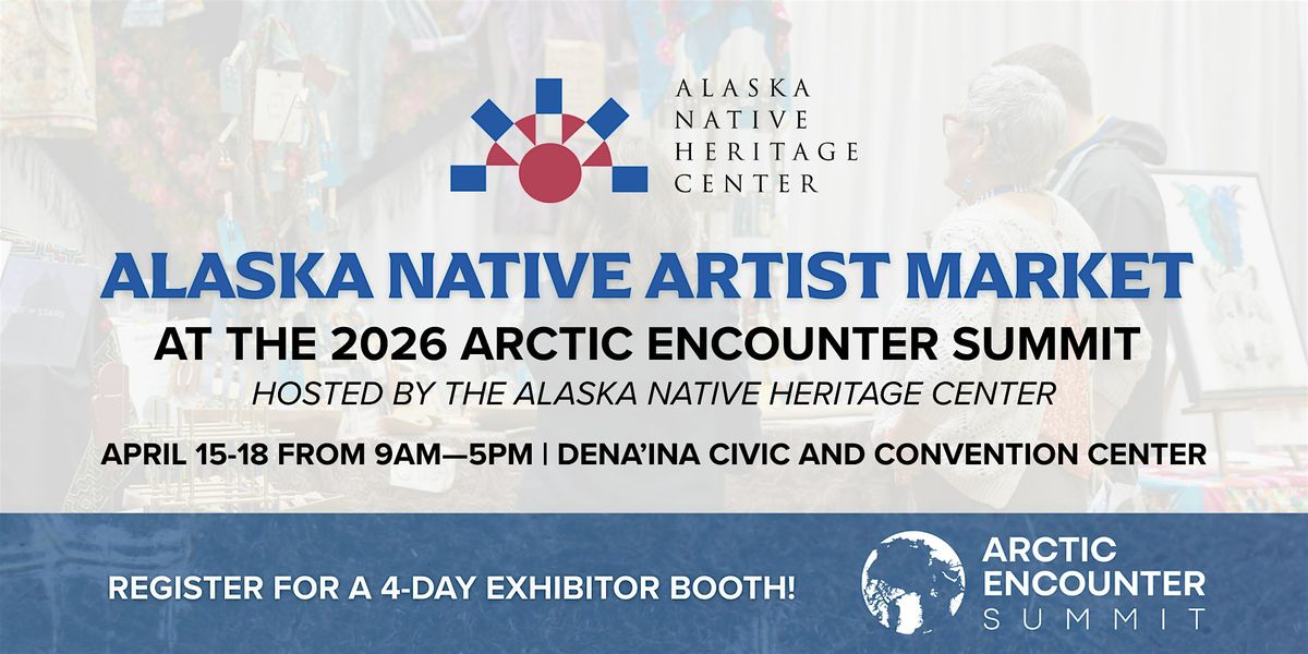 Join fellow Alaska Native artists for an expanded artist market during the 2026 Arctic Encounter Summit at the Dena’ina Civic and Convention Center in Anchorage, Alaska. Presented in partnership by the Alaska Native Heritage Center and Arctic Encounter, this event runs April 15–18, from 9AM to 5PM daily.