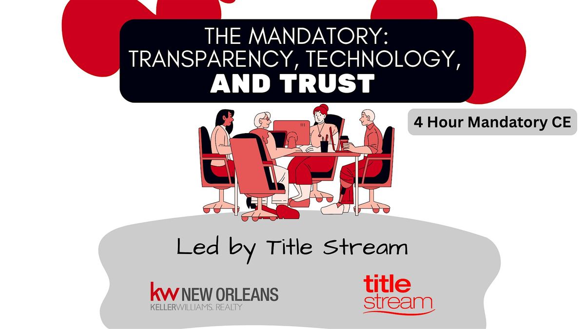 Join us for CE: 2026 Mandatory — Transparency, Technology, and Trust on Thursday, March 26 from 10:00 AM–2:00 PM. This LREC-required course for all active Louisiana real estate licensees covers updates to mandatory forms, buyer representation requirements, responsible use of technology, fraud awareness, and strategies to maintain professionalism and public trust in today’s evolving real estate landscape. Completion satisfies the 2026 LREC Mandatory Course requirement and counts toward your annual continuing education hours. Lunch will be provided.