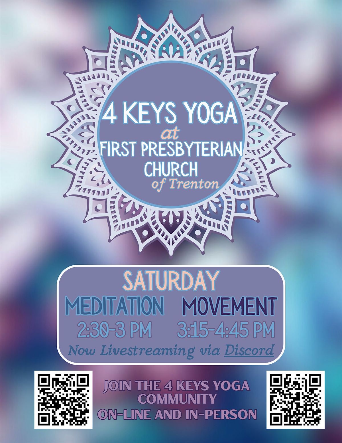 Info: An introduction to the physical practices of Yoga, Asana(Command of the Body) and Pranayama(Command of the Breath). Not suitable for children. Chairs are available to modify practice for all levels. Bringing your own props is highly encouraged.