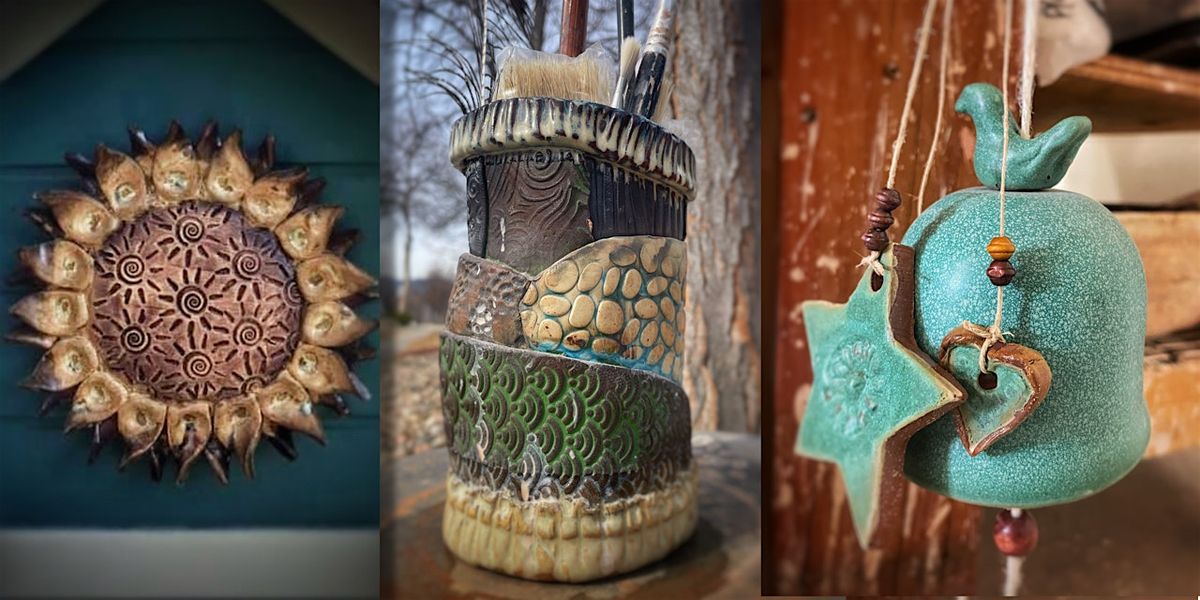 Spring into a world of clay and decorate your place with handmade items. We're getting wild with texture in this class! Projects will include textured flower pot, textured sunflower and textured wind chimes. Class 1&2: instruction on projects, Class 3: paint and glazing. Class 4: Stringing Chimes & glazing No Experience needed in this beginner friendly class!
