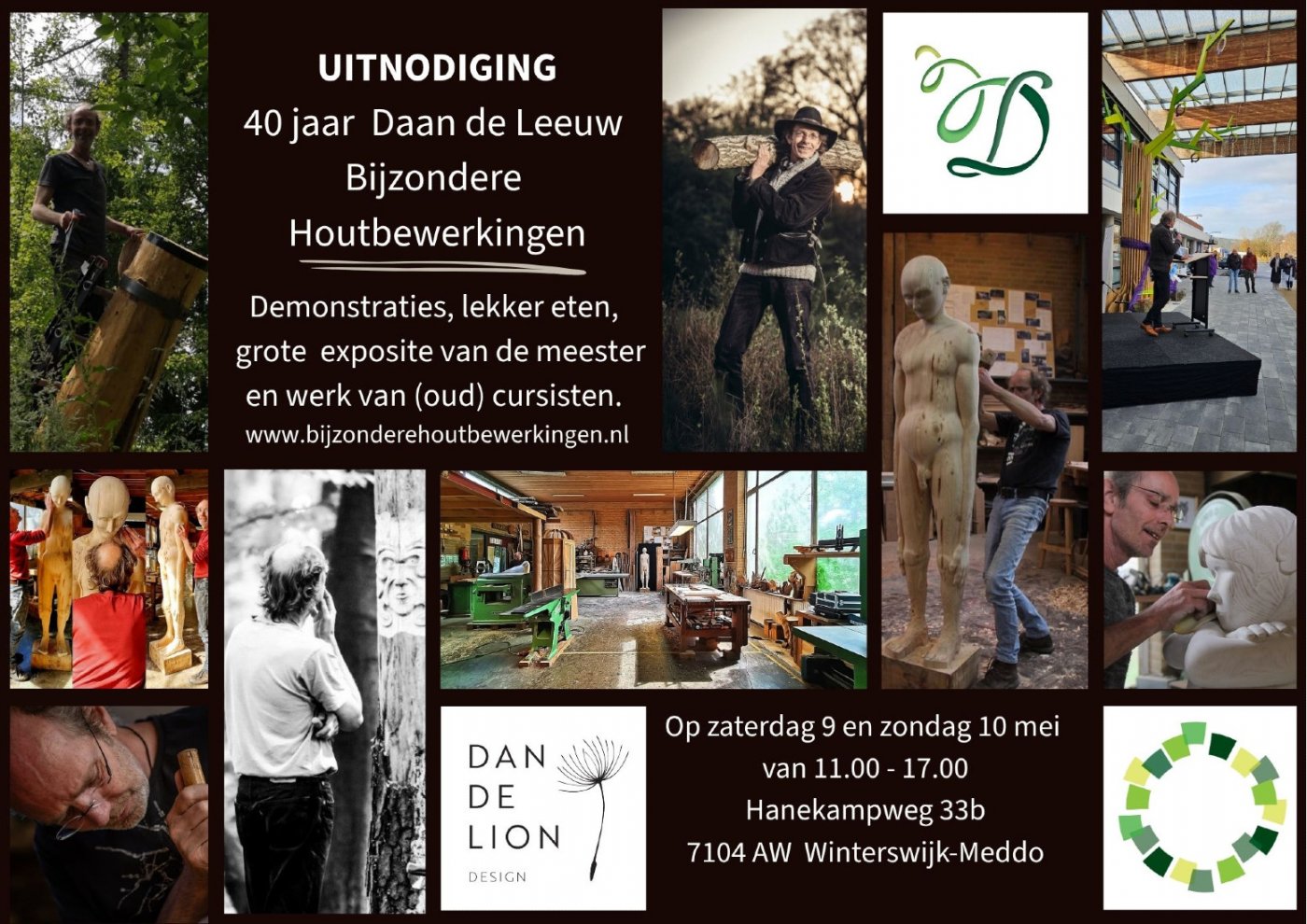 Tijdens het Landelijke Atelier Weekend opent Daan de Leeuw Bijzondere Houtbewerkingen zijn deuren. Er is een grote bijzondere Tentoonstelling van werk van (oud) cursisten en van de Meester zelf. Meer dan 75 werkstukken zullen te zien zijn. Ook is er demonstratie smeden en wordt er heerlijk op open vuren gekookt voor de hongerige bezoekers. Kortom een dag die je niet snel vergeten zou.
