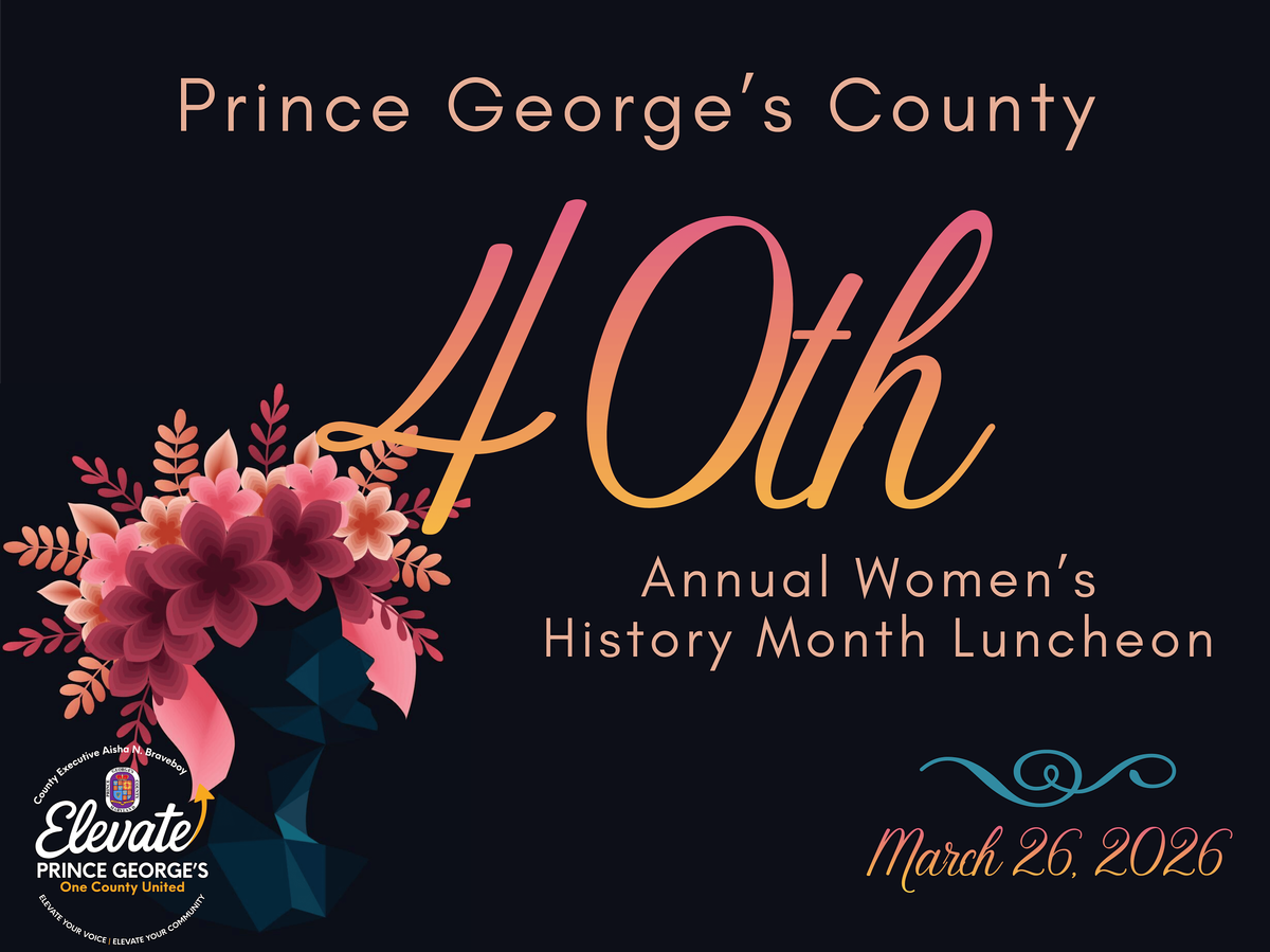 Join Prince George’s County Executive Aisha N. Braveboy for the 40th Annual Women’s History Month Luncheon, a special celebration honoring the extraordinary women who lead, serve, and uplift our communities.