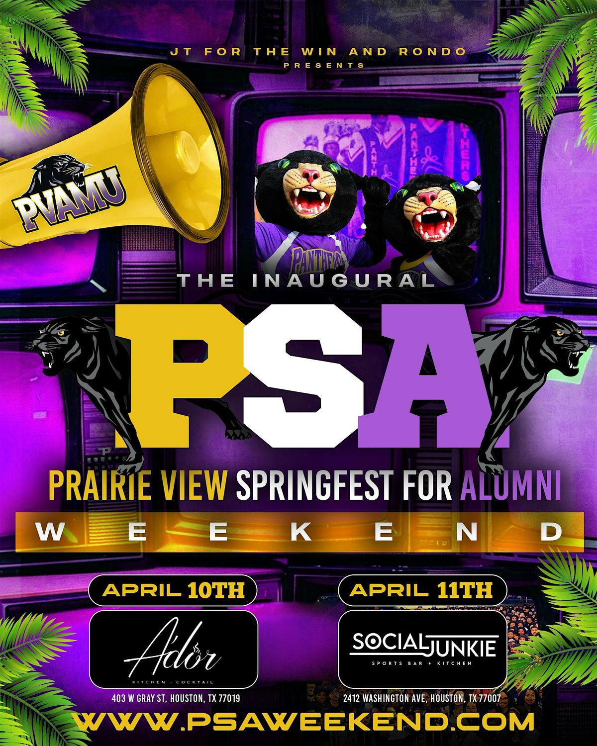 Who said we had to wait til homecoming? Get ready to hang out, catch up, (and what we do best) TURN UP! It’s Springfest Friday night and we taking it back like when we were on the yard! The ultimate PV alumni take over for an epic PSA weekend kickoff. Come through, catch up, and enjoy the vibes with old friends and new faces. Don’t miss out on the fun!