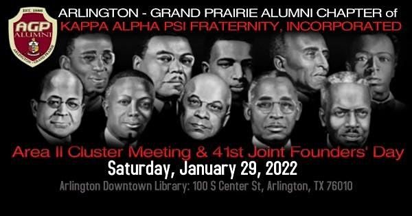 Welcome to the 41st Area II Cluster – Joint Founders Day Celebration, hosted by the Arlington - Grand Prairie Alumni Chapter. As we are all aware the last two years have brought on new and unprecedented challenges. The Brothers of AGP and our cluster coordinator have been working diligently in preparing for our upcoming cluster meeting. We will be hosting a hybrid meeting, accommodating brothers in person, as well as virtually.