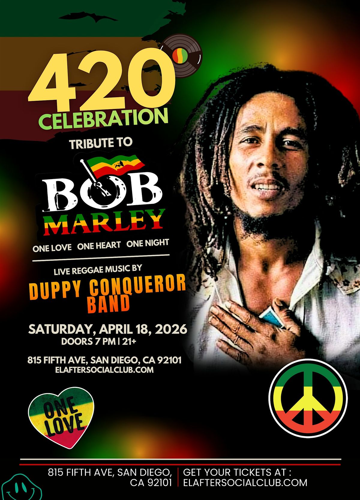 Kick back and vibe to some classic Bob Marley tunes while celebrating 420 with good friends and good times.