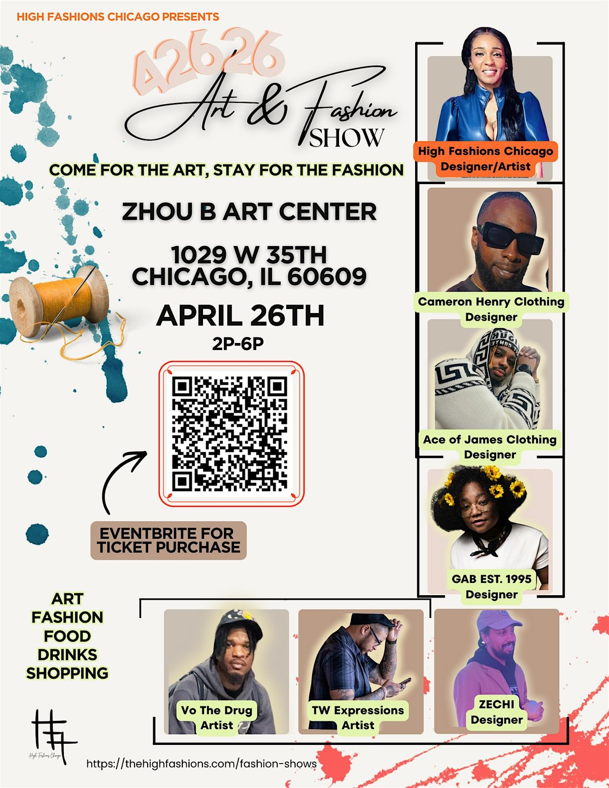 Join us at the Zhou B Art Center on April 26, 2026 at 2:00 PM (Central Time) for a super dope mix of art and fashion! Expect amazing creativity, unique styles, and a fun vibe. Whether you're an art lover or fashion enthusiast, this event is the place to be. Don’t miss out on a day full of inspiration and great company!