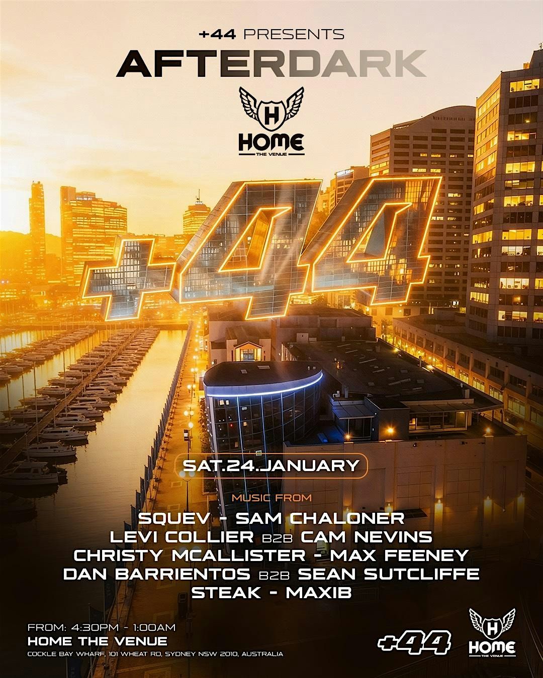 STRAIGHT OFF THE BOAT AND INTO THE AFTERPARTY. WE RETURN TO THE LEGENDARY "HOME THE VENUE" FOR OUR AFTERDARK SERIES... 4:30PM-1:00AM...