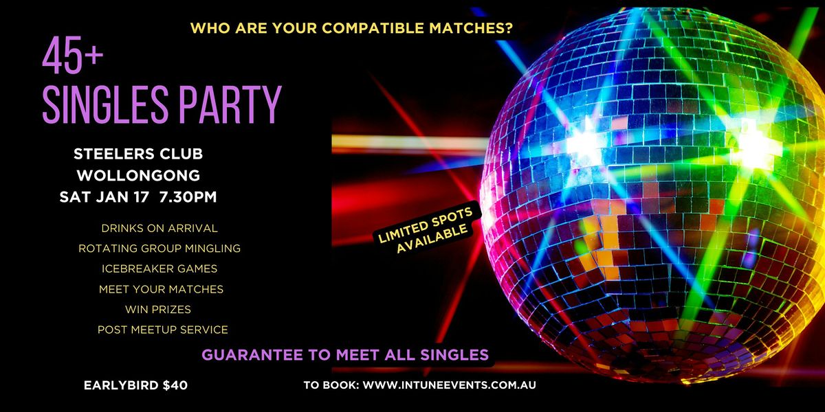 Join us for an epic 45+ Singles Party at Steelers Club Wollongong! Get ready for a unique, fun and structured format where we guarantee you will meet ALL singles and spark genuine connections.