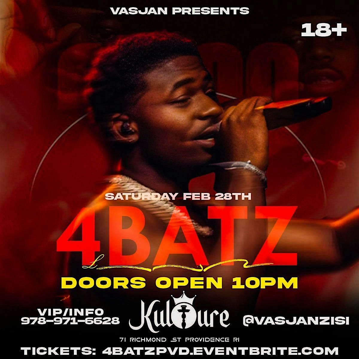 4BATZ PERFORMING LIVE IN DOWNTOWN PROVIDENCE AT KULTURE, SATURDAY FEB 28TH 2026