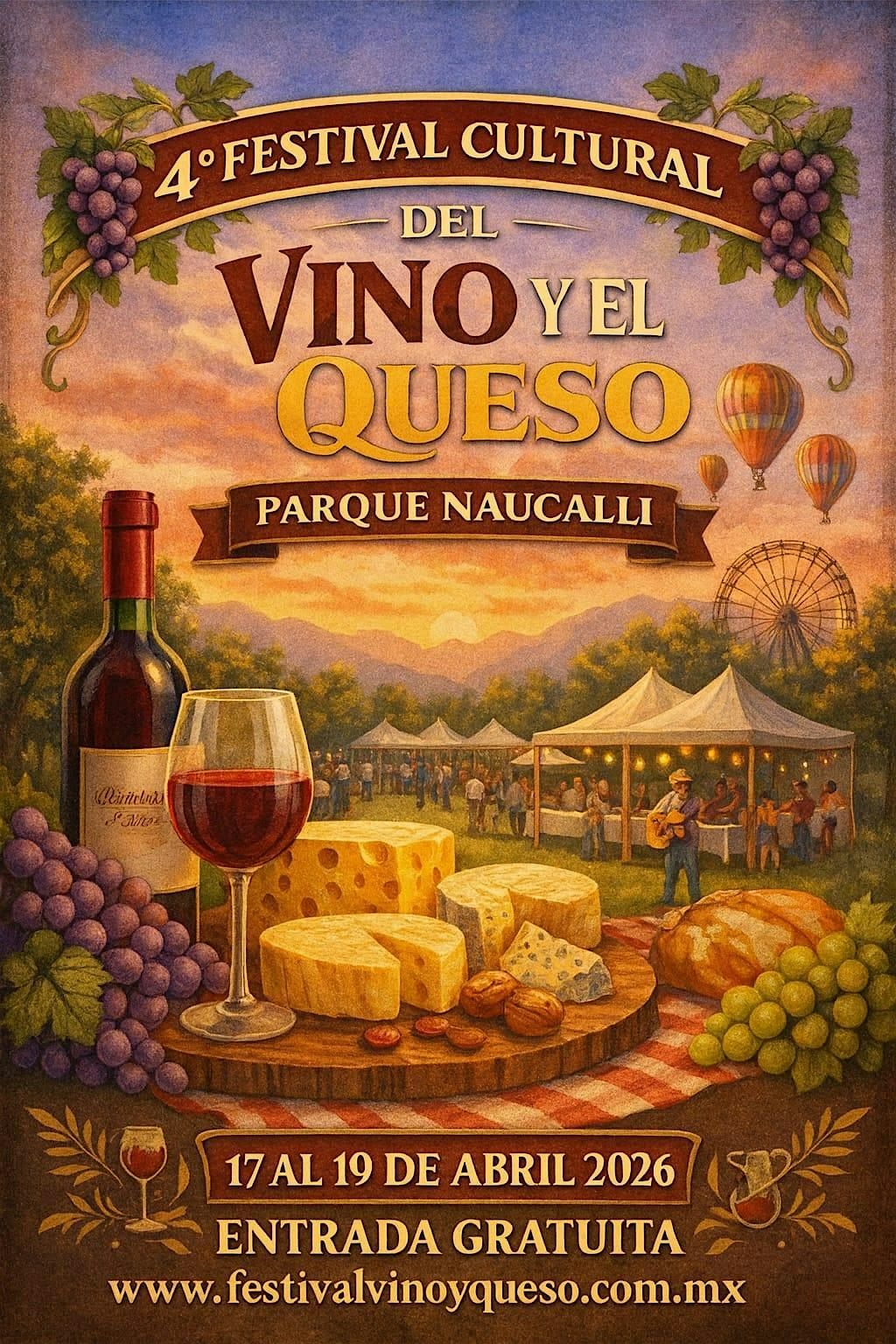 ¡Prepárate para disfrutar de una experiencia única en el Parque Naucalli! El Festival Cultural del Vino y el Queso está de vuelta para su cuarta edición. Sumérgete en la deliciosa combinación de sabores mientras disfrutas de música en vivo, exposiciones artísticas y mucho más.