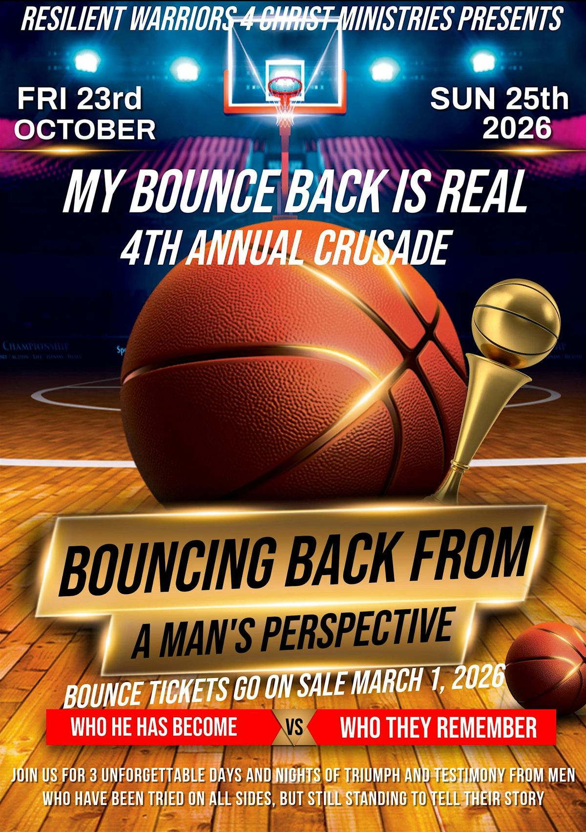 Bounce Back with us: raw, real conversations on menβs strength, healing, and powerful comebacks at the 4th Annual Bounce Back event!Agenda