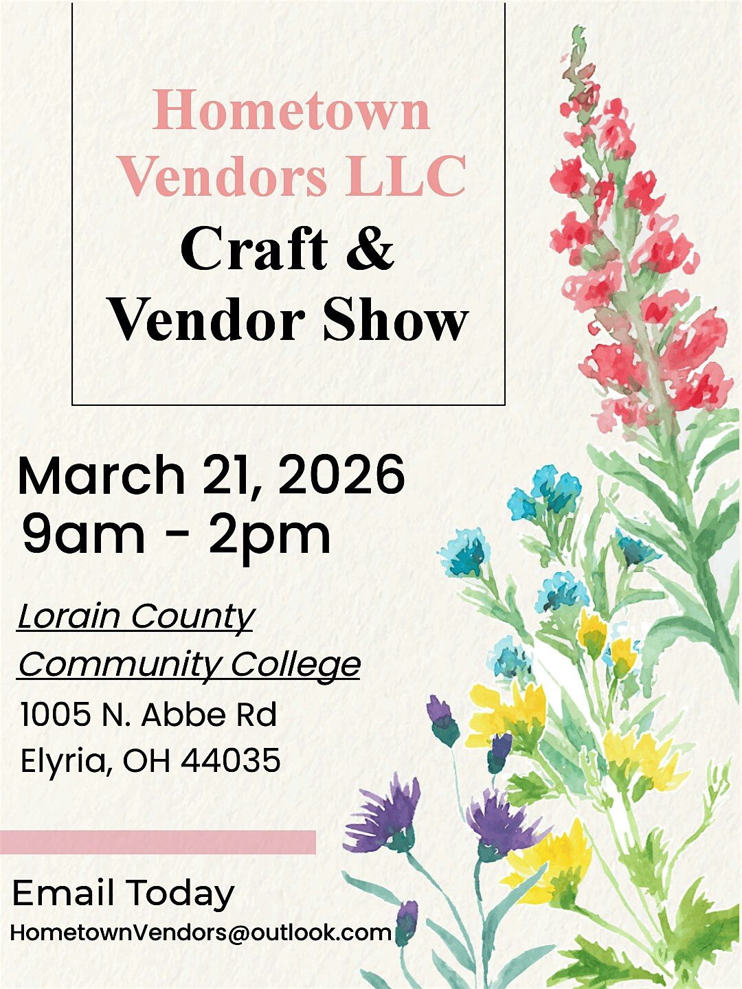 If you are interested in being a vendor for any of our 2026 events please email us at [email protected] you can find our list online at HometownVendors.org.Then follow us on Instagram @hometownvendors_llc and TikTok @hometown.vendors.llc for updates on our shows.