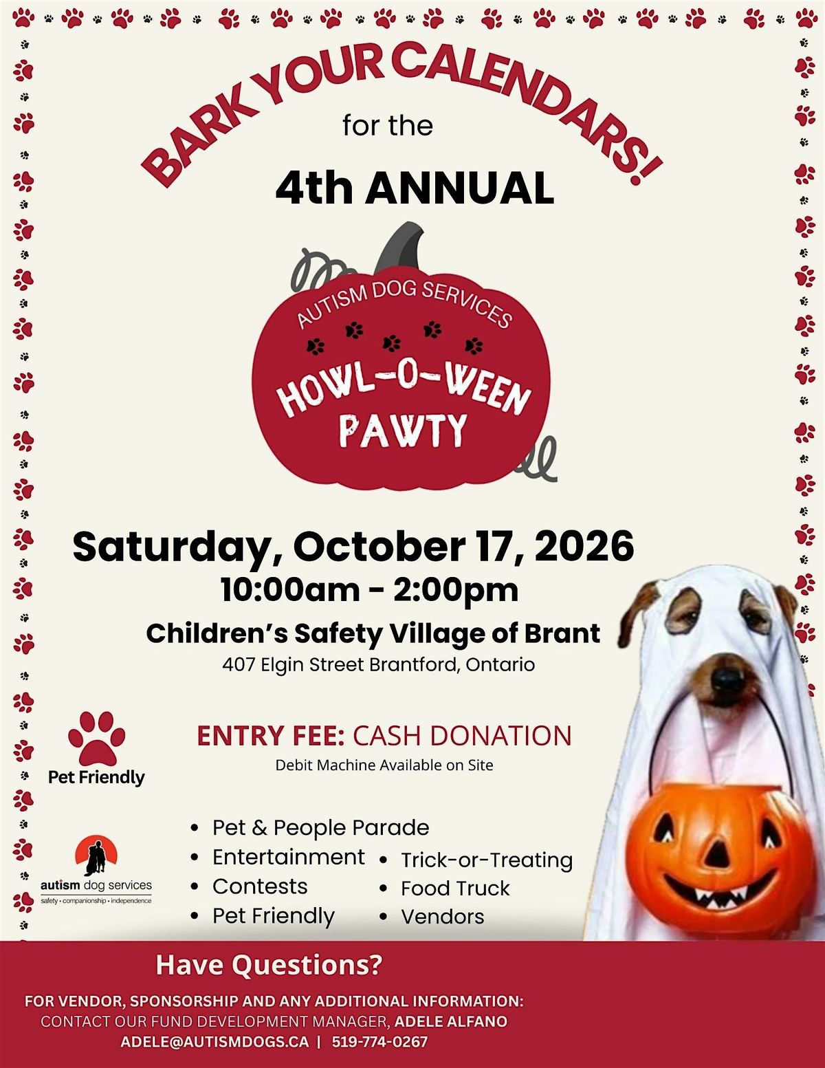 The 4th Annual Howl-o-Ween Pawty is an open to the public fundraising event organized by Autism Dog Services (www.autismdogservices.ca)
