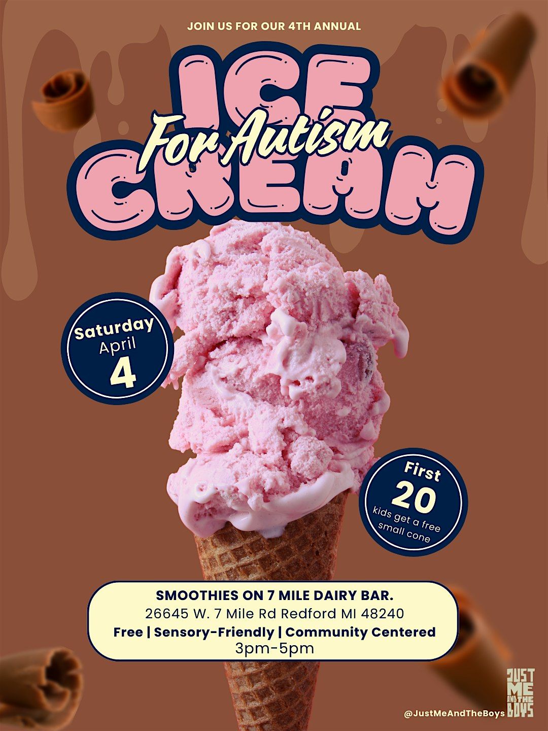 Ice Cream for Autism is a free, sensory-friendly community gathering created by Just Me and the Boys, a neurodivergent family dedicated to supporting other neurodivergent families through resources, events, and awareness around Autism, ADHD, and homeschooling.