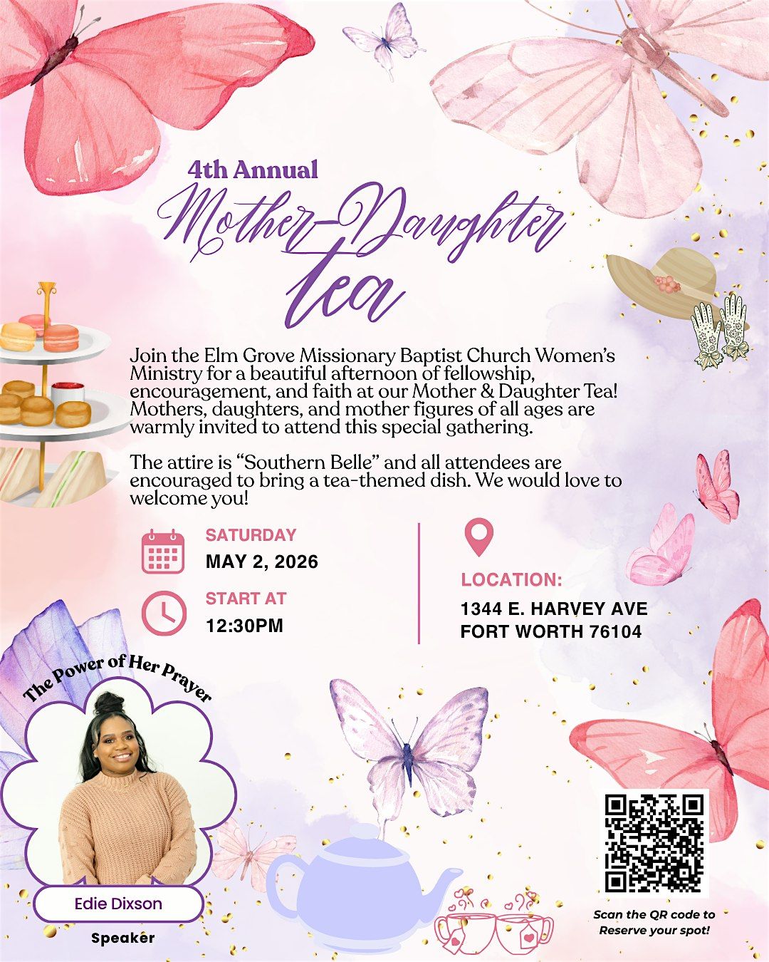 Join us for a beautiful afternoon of fellowship, faith, and encouragement at our Mother & Daughter Tea hosted by the Elm Grove Missionary Baptist Church Women's Ministry. This special gathering is open to mothers, daughters, and mother figures of all ages for a time of connection, community, and celebration.